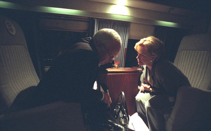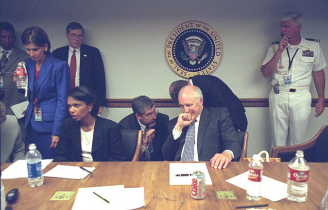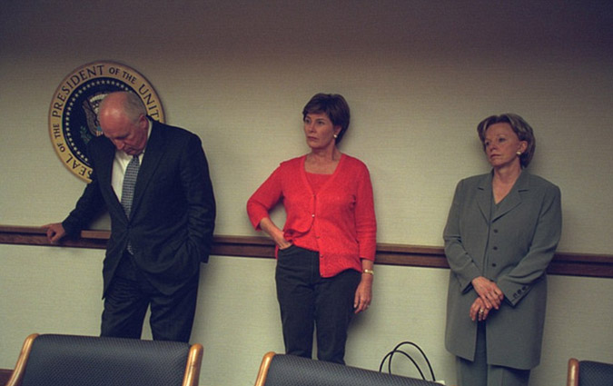 Οι φωτογραφίες έχουν τραβηχτεί από το φωτογράφο του αντιπροέδρου Τσέινι και σε μία από αυτές απαθανατίζεται ο τότε πρόεδρος των ΗΠΑ, Τζορτζ Μπους, λίγα λεπτά πριν απευθύνει το διάγγελμα στον αμερικανικό λαό για την επίθεση που συγκλόνισε τον κόσμο και άλλαξε το ρου της ιστορίας.