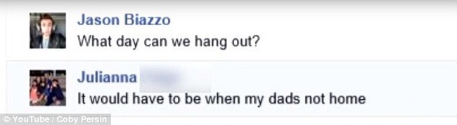 Ο 21χρονος σταρ του YouTube, Coby Persin, έκανε το πείραμα αυτό για να δείξει στα παιδιά πόσο υπαρκτός είναι ο κίνδυνος παιδόφιλων και βιαστών στο ίντερνετ, προσποιούμενος ο ίδιος τον έφηβο που προσεγγίζει κορίτσια για να κάνουν παρέα.