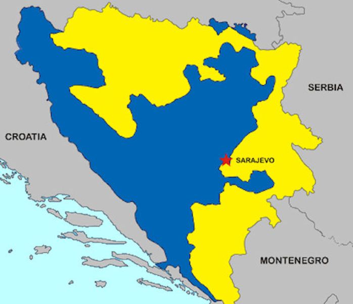 Με το κίτρινο χρώμα στον χάρτη είναι οι σερβικές περιοχές και με το μπλε οι μουσουλμανικές.