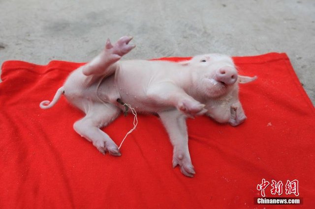 Ένας καλόψυχος κάτοικος της Τιαντζίν στην Κίνα, υιοθέτησε ένα γουρουνάκι με δύο κεφάλια και τρία αφτιά.