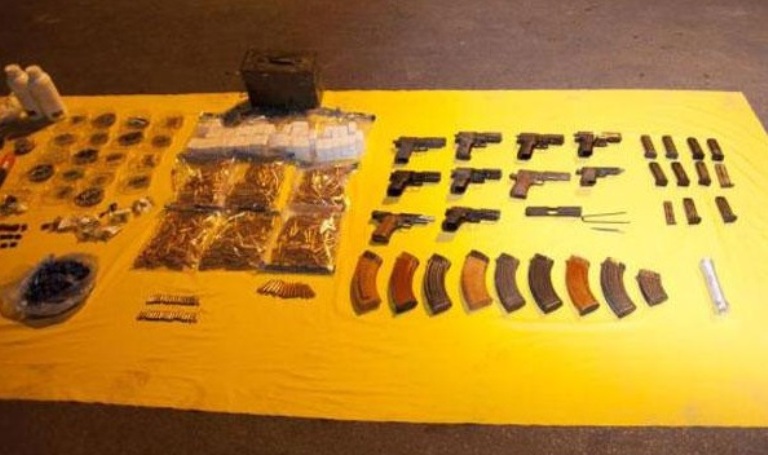 Η Αστυνομία βρήκε και κατάσχεσε αυτόματα όπλα και μια ζώνη βομβιστή αυτοκτονίας, από αυτές που έχουν ειδικές θήκες για να μπαίνουν τα εκρηκτικά.