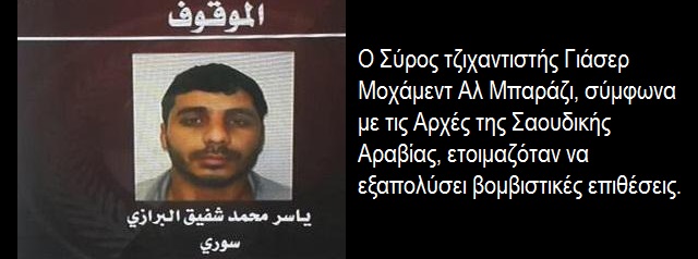 Ένας από τους συλληφθέντες είναι Σύρος, ο Γιάσερ Μοχάμεντ Αλ Μπαράζι, ο οποίος, σύμφωνα με το υπουργείο, ετοιμαζόταν να εξαπολύσει βομβιστικές επιθέσεις.