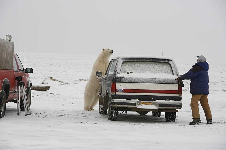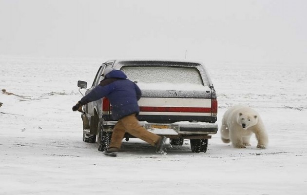Μερικές εξωτερικές δουλειές είναι πάρα πολύ δύσκολες. Στην Μανιτόμπα (Καναδάς) μπορεί να είναι ακόμη πιο δύσκολες. Δεν είναι λίγο να έχεις απρόβλεπτη συνάντηση με πολική αρκούδα. Στις φωτογραφίες μπορείτε να δείτε καρέ-καρέ πως ένας εργαζόμενος προσπαθεί να αποφύγει την αρκούδα. Έξυπνο και το σχόλιο του imgur.com όπου ανέβηκαν οι φωτογραφίες: “Ζητείται εργαζόμενος με μισθό 200 δολάρια την ώρα. Προσόντα: Γρήγορος στο τρέξιμο”!
