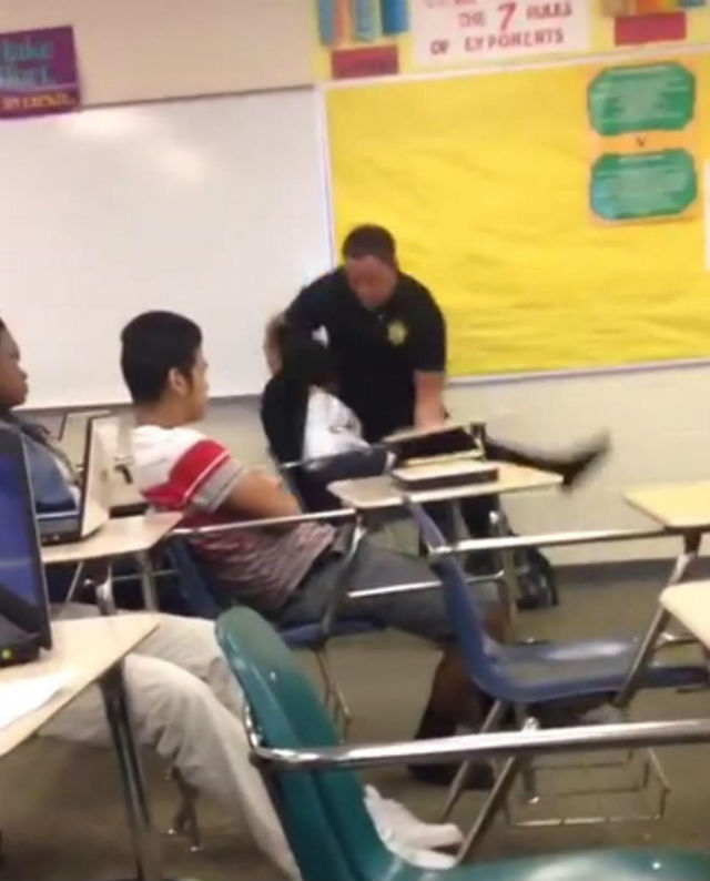 Σε βίντεο φαίνεται ένας αστυνομικός που είναι αποσπασμένος στο σχολείο να φέρεται βίαια σε μία αφροαμερικανή μαθήτρια. Αρχικά ο αστυνομικός απευθύνεται στη μαθήτρια και της λέει: «Είτε θα έρθεις είτε θα σε αναγκάσω». Στη συνέχεια χωρίς να της δώσεις καθόλου χρόνο να αντιδράσει, την αρπάζει και την ρίχνει στο θρανίο της και στο πάτωμα και από εκεί την σηκώνει και την πετάει στην άλλη άκρη της αίθουσας.