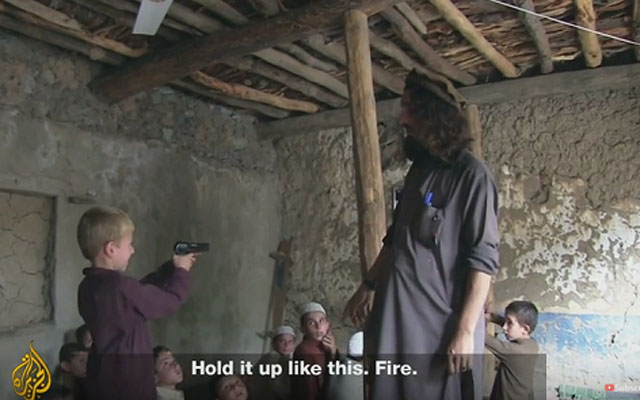 Ο… καθηγητής Αμντουλάχ Γκούλ εξηγεί στα αγόρια και τα κορίτσια που είναι όλα αφγανικής καταγωγής τι είναι η τζιχάντ, λέγοντας πως πρόκειται για «το στόχο να εφαρμοστεί η θρησκεία του Θεού σε ολόκληρο τον κόσμο», συμπληρώνοντας ότι ο Θεός θέλει να καταπολεμηθεί η «ειδωλολατρία κι η απιστία σε ολόκληρο τον κόσμο».