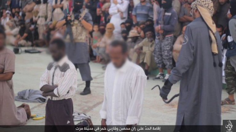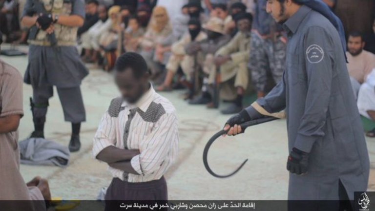 Στην πόλη Σύρτη, στη Λιβύη, το Ισλαμικό Κράτος μαστίγωσε δημοσίως άνδρες που βρέθηκαν ένοχοι για κατανάλωση αλκοόλ και διάπραξη μοιχείας.