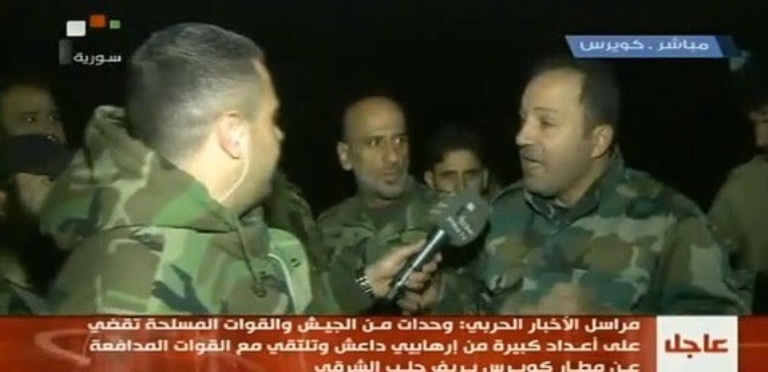 Την Τρίτη το βράδυ οι συριακές κυβερνητικές δυνάμεις διέλυσαν τους τζιχαντιστές που πολιορκούσαν το στρατιωτικό αεροδρόμιο του Κουέιρες και απεγκλώβισαν τη φρουρά του, που επί δύο χρόνια -από το 2013- κράτησαν σθεναρή άμυνα υπερασπιζόμενοι την αεροπορική βάση.