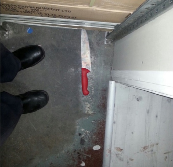 Το μαχαίρι που χρησιμοποίησε ο τζιχαντιστής για να σφάξει τους ανυποψίαστους Ισραηλινούς που επιτέθηκε.