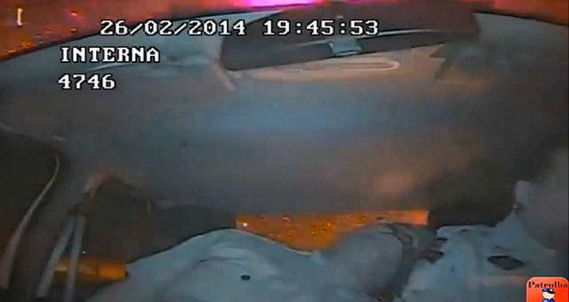 Δυο αξιωματικοί κινούνται με το περιπολικό σε δρόμο σε πόλη της Βραζιλίας όταν «έπεσαν» κίνηση.