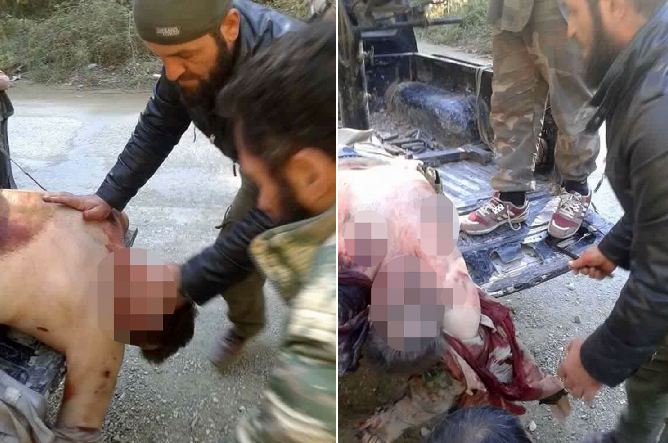 Σε αυτές φέρεται να είναι το σώμα του νεκρού άνδρα μέσα στα αίματα, τον οποίο σέρνουν πανω σε μια καρότσα και πανηγυρίζουν ευχαριστώντας τον Αλλάχ για τον θάνατο του αλλά και προσωπικά αντικείμενα του.