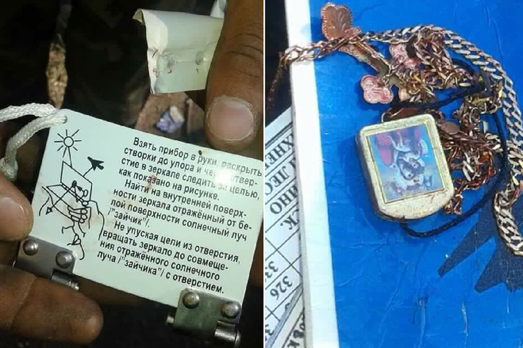 Μάλιστα, δείχνουν στην κάμερα μια αλυσίδα με ένα εικόνισμα της Παναγιάς και έναν σταυρό, που όπως ισχυρίζονται, ανήκουν στον άτυχο Ρώσο, μαζί με ένα εξάρτημα από τον εξοπλισμό του.