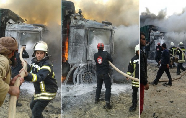 Οι Ρώσοι λέγεται ότι κατέστρεψαν 10 τουρκικά φορτηγά, τα οποία σύμφωνα με τους Τούρκους μετέφεραν ανθρωπιστική βοήθεια στην ελεγχόμενη από τους τζιχαντιστές πόλη Αζάζ στη βόρεια Συρία, κοντά στα σύνορα με την Τουρκία.