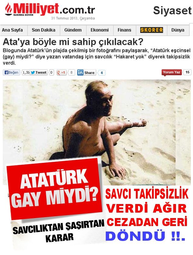 Ωστόσο, είναι η πρώτη φορά που δημοσιεύεται φωτογραφία του σκληρού Ατατούρκ σε πόζα θηλυπρεπή σε κάποια παραλία. Βεβαίως μπορεί να είναι ένα τυχαίο καρέ, αλλά η συγκεκριμένη εικόνα ήδη έχει προκαλέσει σεισμό στη γειτονική χώρα, ανάλογο με όταν τέθηκε υπό αμφισβήτηση ο ανδρισμός του Μεγάλου Αλεξάνδρου σε εμάς.