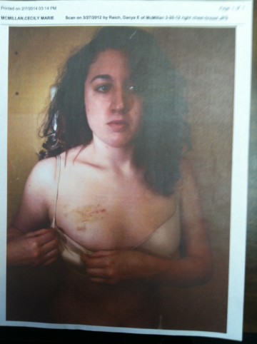 Το σημάδι στο στήθος επιβεβαιώνει τα λεγόμενα της, ότι ο αστυνομικός την άρπαξε με βία