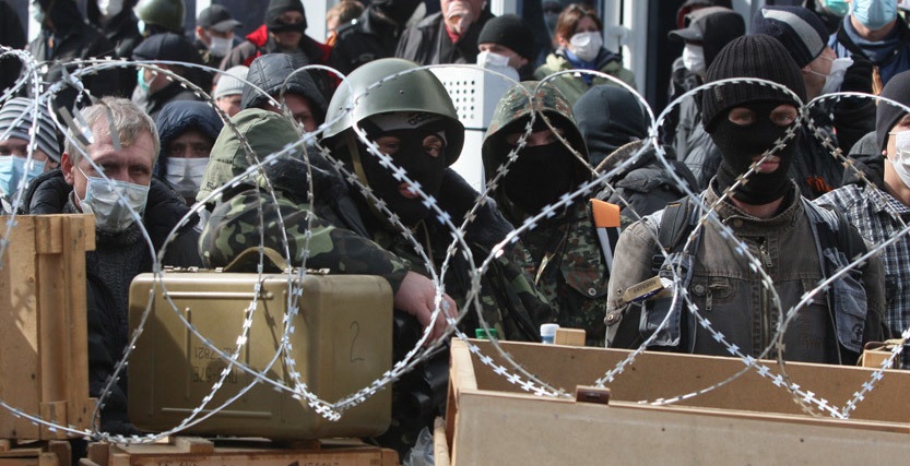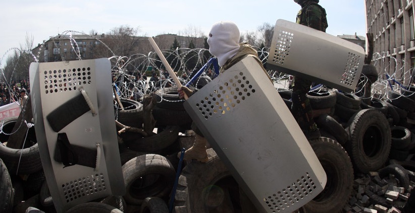 Στα οδοφράγματα του Ντονέτσκ της ανατολικής Ουκρανίας οι ρωσόφωνοι εξεγερμένοι, που έχουν ήδη ανακηρύξει την ανεξαρτησία τους από το Κίεβο, περιμένουν τα ουκρανικά τανκς.
