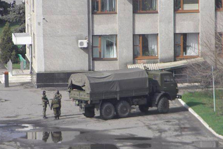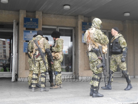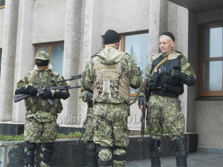 Σύμφωνα με ανάρτηση της φιλοκυβερνητικής Ουκρανικής Πράβδα, στο Σλοβιάντσκ έχουν φτάσει ρωσικά στρατεύματα από την Κριμαία, με φορτηγά χωρίς πινακίδες και οι άνδρες δεν φέρουν διακριτικά, παρά μόνο την κορδέλα του Αγίου Γεωργίου. Οι Ουκρανοί καθεστωτικοί διασκεδάζουν τους φόβους τους αποκαλώντας υποτιμητικά αυτούς τους ένοπλους “μικρά πράσινα ανθρωπάκια”.
