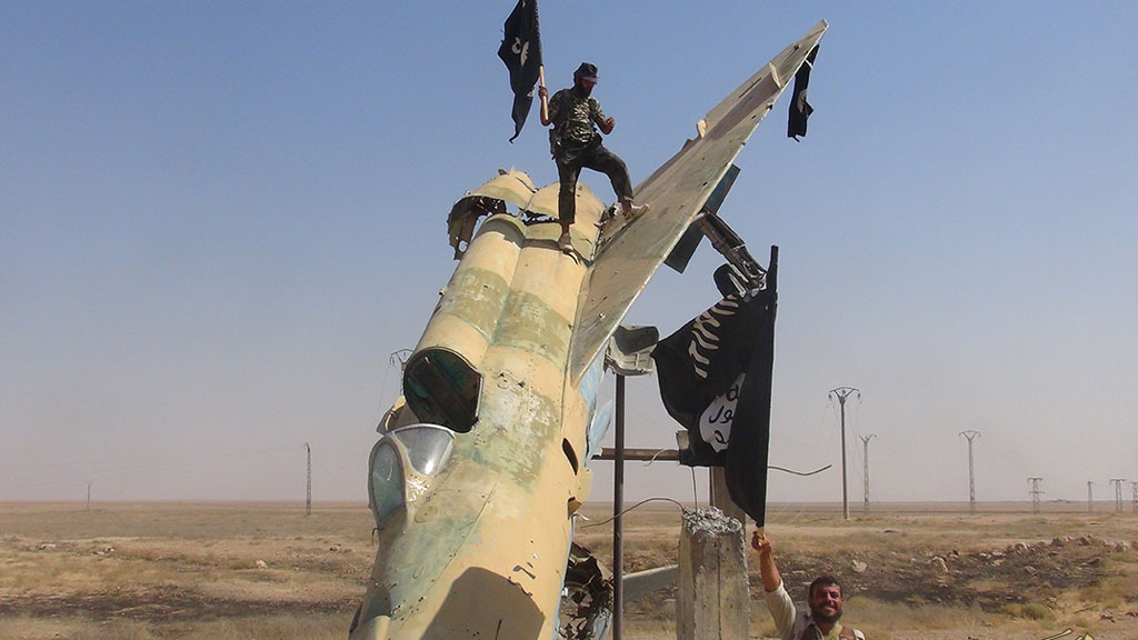 Τζιχαντιστές πανηγυρίζουν μετά την κατάληψη του αεροδρομίου της Τάμπκα.