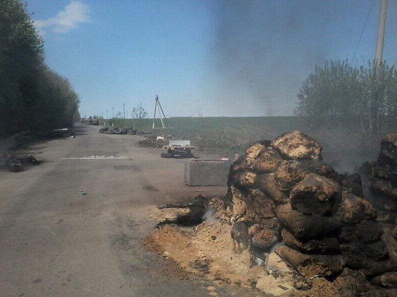 Σημείο ελέγχου των ρωσόφιλων αυτονομιστών μετά την επίθεση που δέχθηκε από τον ουκρανικό στρατό.