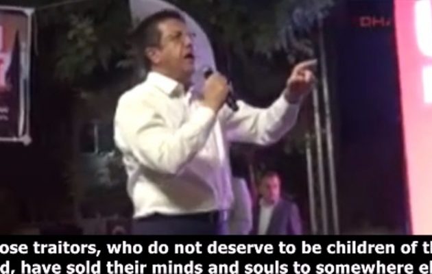 Νέο “κρούσμα” ο Τούρκος υπουργός υπουργός Οικονομίας Νιχάτ Ζεϊμπεκτσί (Nihat Zeybekci), ο οποίος απευθυνόμενος σε συγκέντρωση οπαδών του ισλαμικού κυβερνώντος κόμματος AKP είπε ότι οι γκιουλενιστές, που κατηγορούνται ως υπαίτιοι για την απόπειρα πραξικοπήματος, θα εκλιπαρούν να τους σκοτώσουν για να γλιτώσουν από αυτά που θα υποστούν.