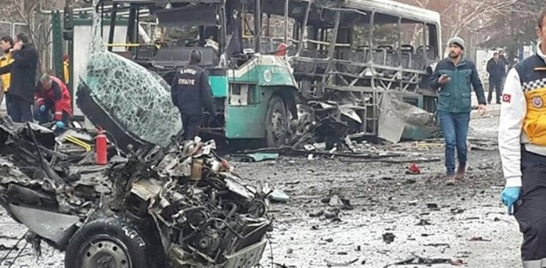 Λεωφορείο γεμάτο Τούρκους στρατιώτες χτυπήθηκε από βομβιστική επίθεση μπροστά στην είσοδο πανεπιστημίου στην Καισάρεια της κεντρικής Τουρκίας και σύμφωνα με νοσοκομειακές πηγές σκοτώθηκαν 13 στρατιώτες και 55 τραυματίστηκαν.