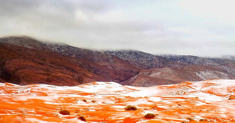 «Όλοι έμειναν άφωνοι όταν αντίκρισαν το χιονισμένο τοπίο. Ήταν απίθανο να βλέπεις το χιόνι να πέφτει πάνω στην άμμο και σκέφτηκα αμέσως ότι έπρεπε να τραβήξω φωτογραφίες», είπε στην Daily Mail o Karim Bouchetata, ο οποίος έσπευσε να αιχμαλωτίσει με τον φακό του το φαινόμενο.