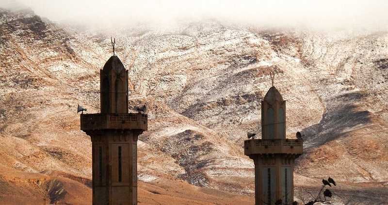 Πρόκειται για το μικρό χωριό Άιν Σέφρα στην Αλγερία, όπου σύμφωνα με κατοίκους της περιοχής εχθές το απόγευμα άρχισε ξαφνικά να χιονίζει για ώρες.