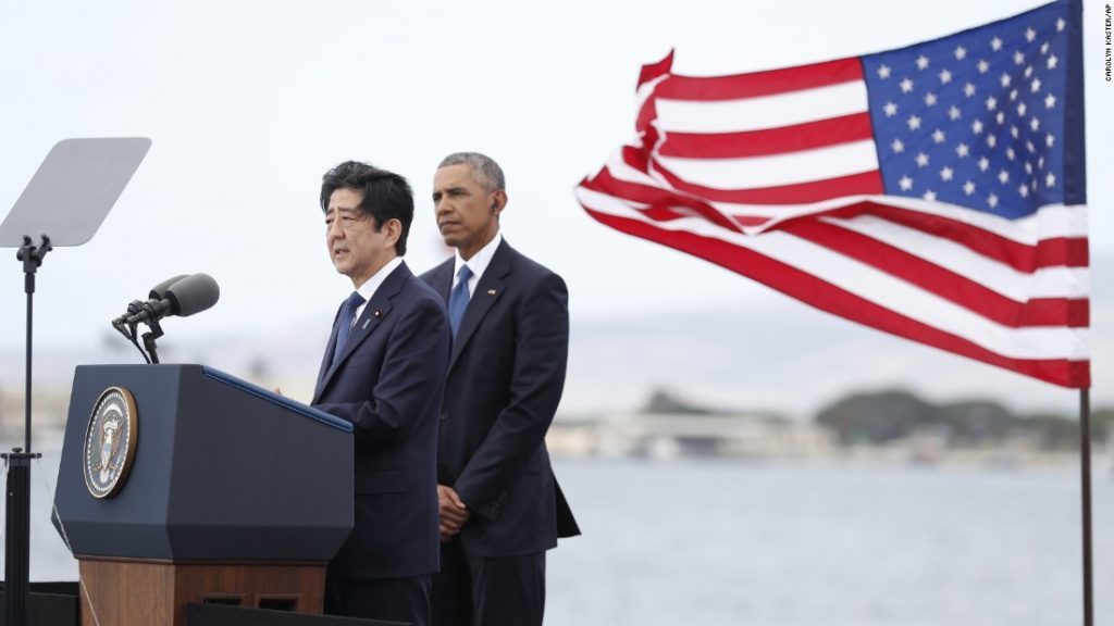 Η επίσκεψη του ιάπωνα ηγέτη στο Περλ Χάρμπορ ακολουθεί την προ μηνών επίσκεψη του Ομπάμα, την πρώτη ενός εν ενεργεία αμερικανού προέδρου, στη Χιροσίμα, όπου οι ΗΠΑ έριξαν την ατομική βόμβα το 1945.