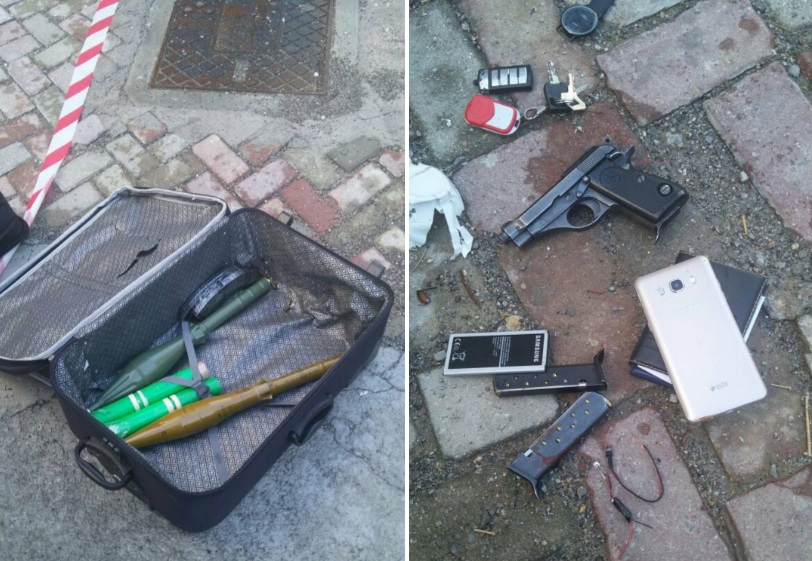 Αριστερά βλέπετε μια βαλίτσα που περιείχε αντιαρματικές ρουκέτες. Δεξιά πιστόλια και κινητά τηλέφωνα των δραστών.«Με βάση την προετοιμασία, τα όπλα, τις βόμβες και τα πυρομαχικά που κατασχέθηκαν, καταλαβαίνουμε ότι ετοιμαζόταν μεγάλη σφαγή», ανέφερε ο κ. Καϊνάκ, μιλώντας σε μέσα ενημέρωσης.
