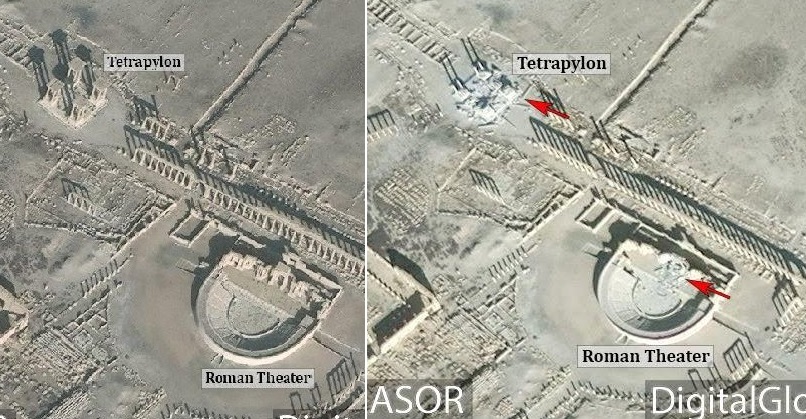 «Τοπικές πηγές μας ενημέρωσαν ότι το Νταές (αραβικό ακρωνύμιο του Ισλαμικού Κράτους) κατέστρεψε το Τετράπυλον, ένα μνημείο με 16 κολώνες. Δορυφορικές φωτογραφίες που ελήφθησαν από τους συναδέλφους μας του πανεπιστημίου της Βοστώνης δείχνουν ζημιές στην πρόσοψη του ρωμαϊκού θεάτρου», δήλωσε ο ο διευθυντής των συριακών αρχαιοτήτων Μααμούν Αμπντουλκαρίμ.