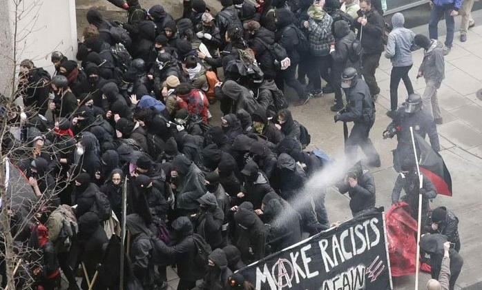 Όπως καταγγέλλεται στο Twitter, οι μπαχαλάκηδες κουκουλοφόροι, χάλασαν και την ειρηνική διαμαρτυρία κατά του Τραμπ.