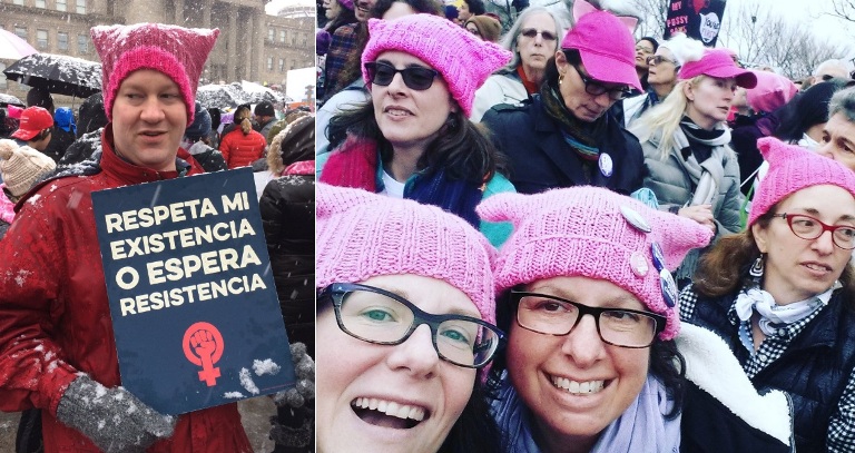 Μεταξύ των διαδηλωτών με τα ροζ σκουφάκια βρισκόταν και ο πρώην υπουργός Εξωτερικών των ΗΠΑ Τζον Κέρι, επίσης γνωστός φιλάνθρωπος και αυτός.