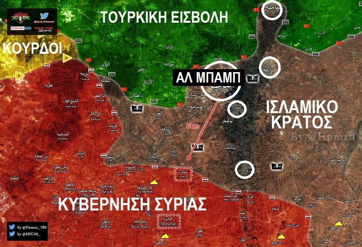 Ενώ 8.000 Τούρκοι καταδρομείς και περίπου 5.000 τουρκόφιλοι μισθοφόροι αδυνατούν εδώ και μήνες να καταλάβουν την κατεχόμενη από το Ισλαμικό Κράτος (ISIS) πόλη Αλ Μπαμπ στη βορειοδυτική Συρία, στην επαρχία του Χαλεπιού, υφιστάμενοι ήττες και σοβαρές απώλειες από τους τζιχαντιστές, ο συριακός στρατός πλησιάζει την ίδια πόλη από τα νότια.