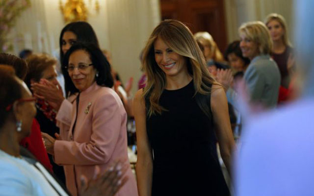 Εκδήλωση με αφορμή την Ημέρα της Γυναίκας πραγματοποιήθηκε στο Λευκό Οίκο και η Πρώτη Κυρία των ΗΠΑ, Μελάνια Τραμπ, ως οικοδέσποινα φορούσε μαύρο φόρεμα Ralph Lauren και μίλησε για την αξία της ελευθερίας και της ισότητας επικαλούμενη την καταγωγή της.