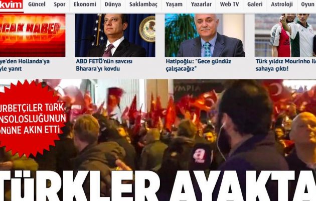 Τουρκικές ιστοσελίδες έχουν πρωτοσέλιδο τις διαδηλώσεις των Τούρκων στο Ρότερνταμ και καλούν τους Τούρκους μετανάστες στη χώρα να βγουν στους δρόμους.
