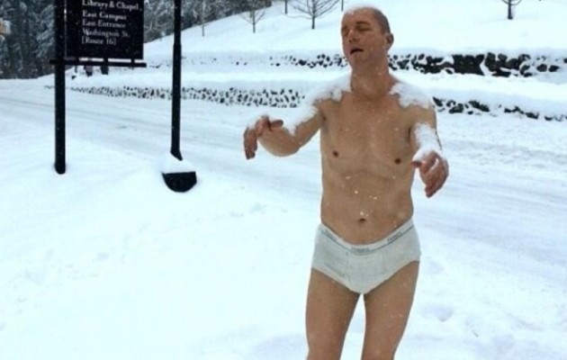 Η πρώτη εικόνα που σου έρχεται στο μυαλό είναι ότι πρόκειται για έναν άνδρα που κάθεται ακίνητος με το εσώρουχο μέσα στο χιόνι, χωρίς ιδιαίτερο λόγο, σε σημείο να ανησυχήσεις εάν πάει καλά…