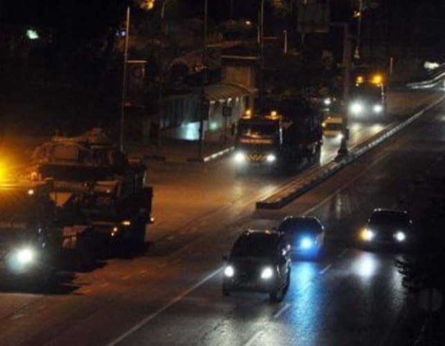 Φωτογραφίες που ανάρτησαν στο διαδίκτυο μιντιακοί ακτιβιστές δείχνουν φάλαγγες από νταλίκες να μεταφέρουν στα κατεχόμενα από την Τουρκία συριακά εδάφη τανκς και αυτοκινούμενα πυροβόλα.
