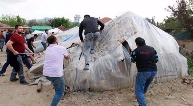 Ένας τουρκικός όχλος που κρατούσε ρόπαλα, καδρόνια και δρεπάνια επιτέθηκε σε καταυλισμό Σύρων προσφύγων στη Σμύρνη, ξυλοκοπώντας ανθρώπους και καταστρέφοντας σκηνές.