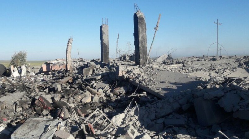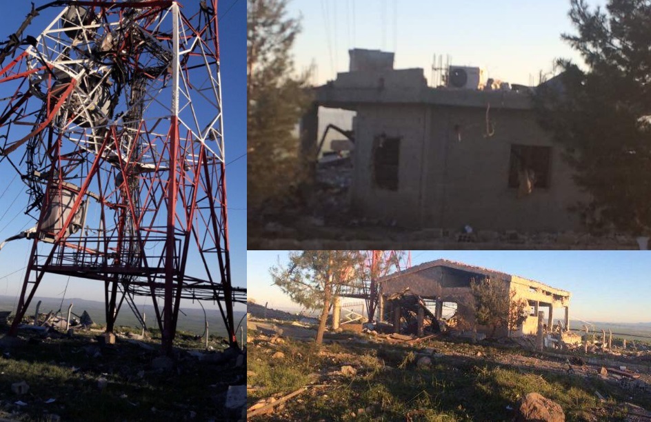 Οι κουρδικές εγκαταστάσεις μετά τον βομβαρδισμό τους. Κάτω ο ραδιοφωνικός σταθμός “Ράδιο Ροζάβα” που επίσης βομβαρδίστηκε.