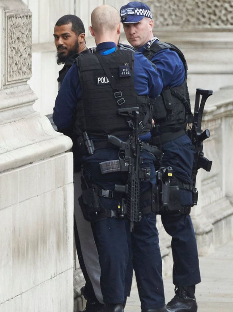 Η μητροπολιτική Αστυνομία του Λονδίνου συνέλαβε τον άνδρα, αφού αστυνομικοί τον σταμάτησαν για έλεγχο κοντά στο βρετανικό κοινοβούλιο και διαπιστώθηκε ότι είχε επάνω του μαχαίρια.