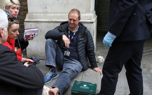 Οι δημοσιογράφοι και οι κάμεραμεν των βρετανικών -και όχι μόνο- τηλεοπτικών δικτύων κάλυπταν το γεγονός και τότε το αυτοκίνητο που μετέφερε τον Κόρμπιν πάτησε στο πόδι έναν κάμεραμαν του BBC!