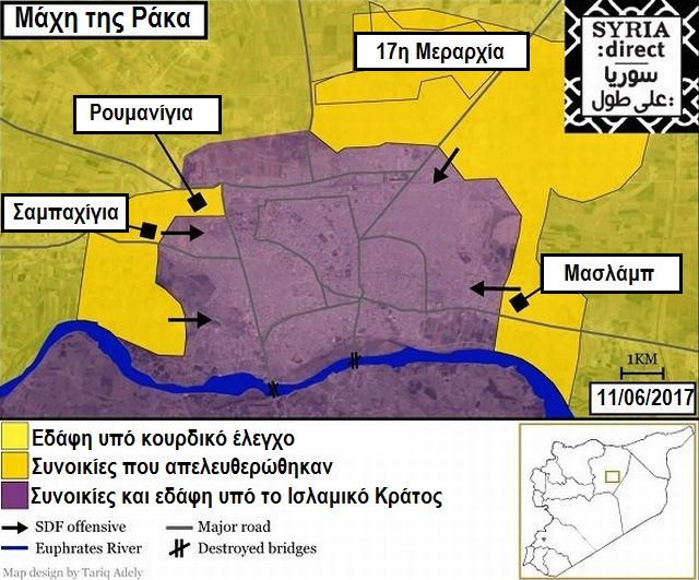 «Η [επιχείριση] Οργή του Ευφράτη απελευθέρωσε τη συνοικία Αλ Ρουμανίγια [Ρομάνι, των Ρωμιών, τη Ρωμαίικη συνοικία] μετά από διήμερη μάχη» ανέφερε η ανακοίνωση των SDF, που μάχονται για την εκδίωξη των τζιχαντιστών από τη Ράκα.