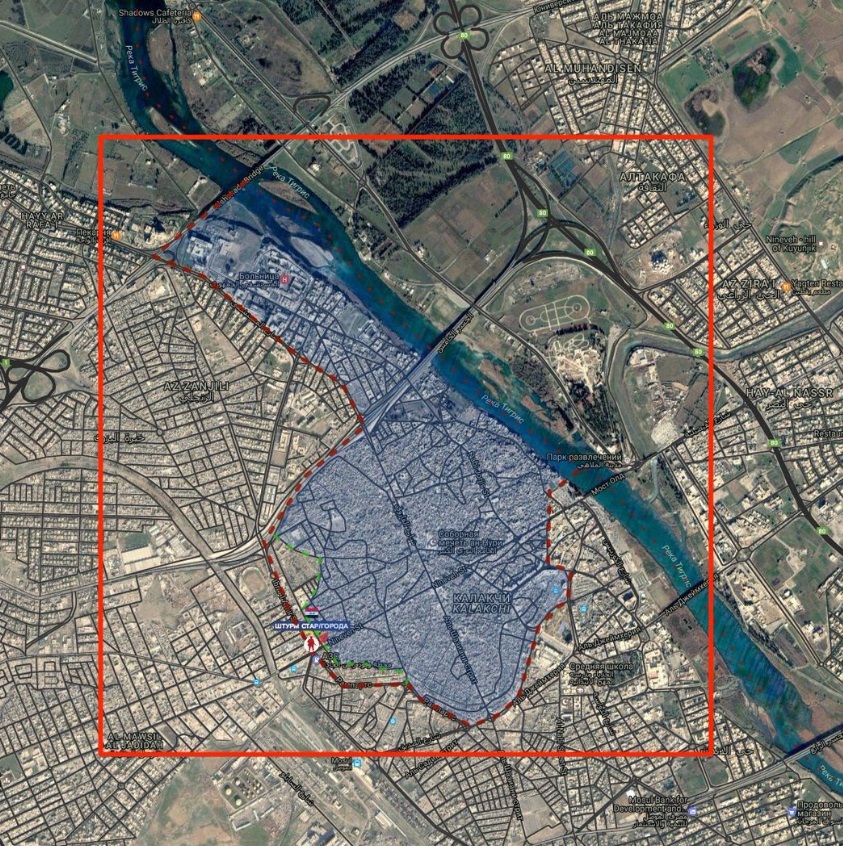 Στον χάρτη, χρωματισμένη, η Παλιά Πόλη της Μοσούλης, όπου δίνεται η τελική μάχη: