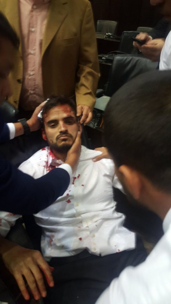 Αυτόπτες μάρτυρες που επικαλείται το πρακτορείο Reuters, έκαναν λόγο για αρκετούς τραυματίες βουλευτές και δημοσιογράφους.