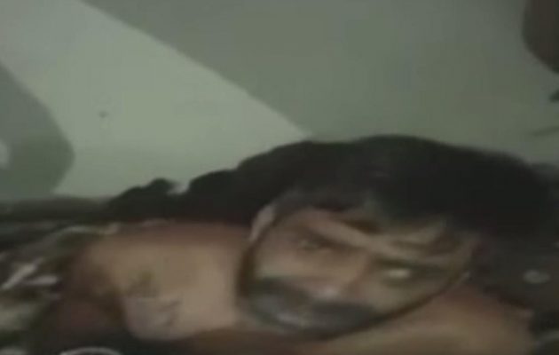 Όπως φαίνεται, οι σαδιστές χτυπούν έναν μετανάστη από το Πακιστάν, με τα χέρια δεμένα πισθάγκωνα, τα πόδια δεμένα και μια κουκούλα στο κεφάλι.