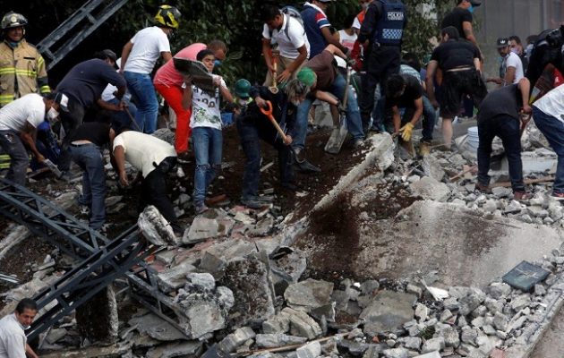 Αψηφώντας την κόπωση τους, μέλη σωστικών συνεργείων στο Μεξικό συνεχίζουν τη μάχη με τον χρόνο για τον απεγκλωβισμό επιζώντων από τα συντρίμμια που άφησε πίσω του ο φονικός σεισμός.