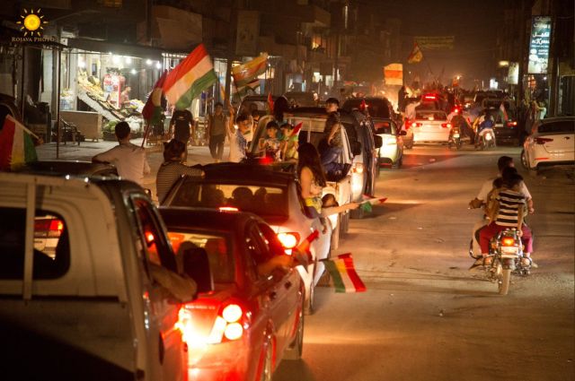 Πανηγυρισμοί για την επικράτηση του “ΝΑΙ” στο δημοψήφισμα για την ανεξαρτησία του ιρακινού Κουρδιστάν ξέσπασαν το βράδυ της Δευτέρας και στην κυρίως κουρδική πόλη Καμισλί της βόρειας Συρίας (συριακό Κουρδιστάν).