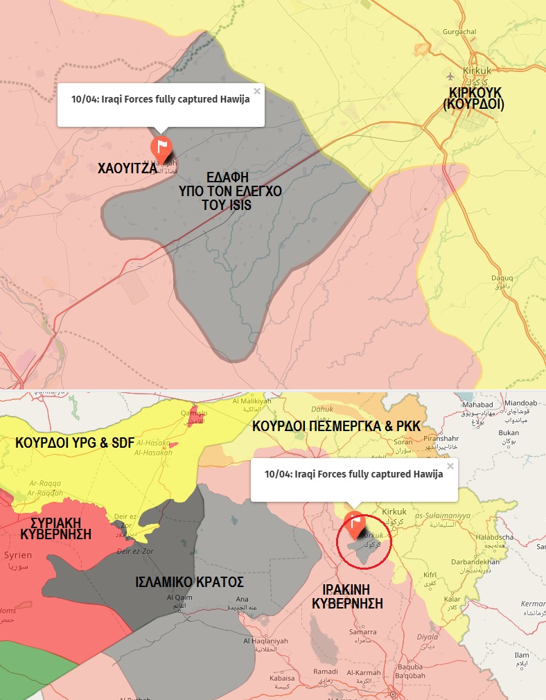 Δείτε στον πολεμικό χάρτη την περιοχή της Χαουίτζα και ευρύτερα τον έλεγχο των εδαφών γύρω από το Ισλαμικό Κράτος: