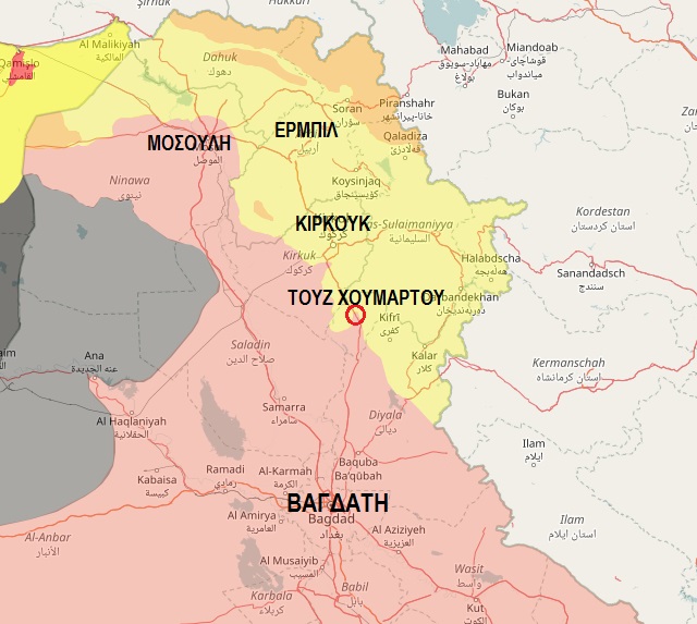 Οι συγκρούσεις λαμβάνουν χώρα μέσα στην τουρκμενική σιιτική κωμόπολη Τουζ Χουρματού, η οποία βρίσκεται 50 χλμ νότια της πόλης του Κιρκούκ.