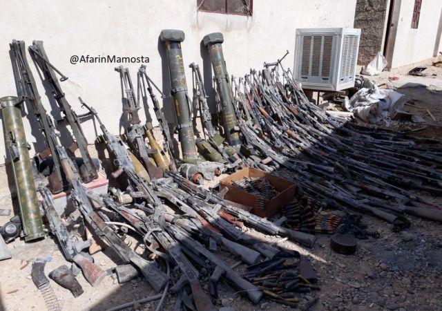 Όπλα των τζιχαντιστών της οργάνωσης Ισλαμικό Κράτος στη Ράκα λάφυρα στα χέρια των Κούρδων.