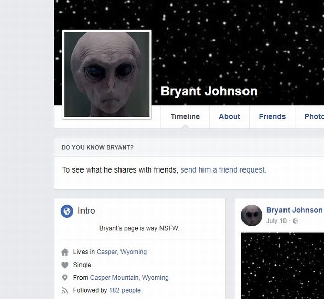 Πάντως ένα θεματάκι με τους… εξωγήινους το έχει, αφού στο Facebook έχει για εικόνα προφίλ έναν εξωγήινο “γκρίζο”.